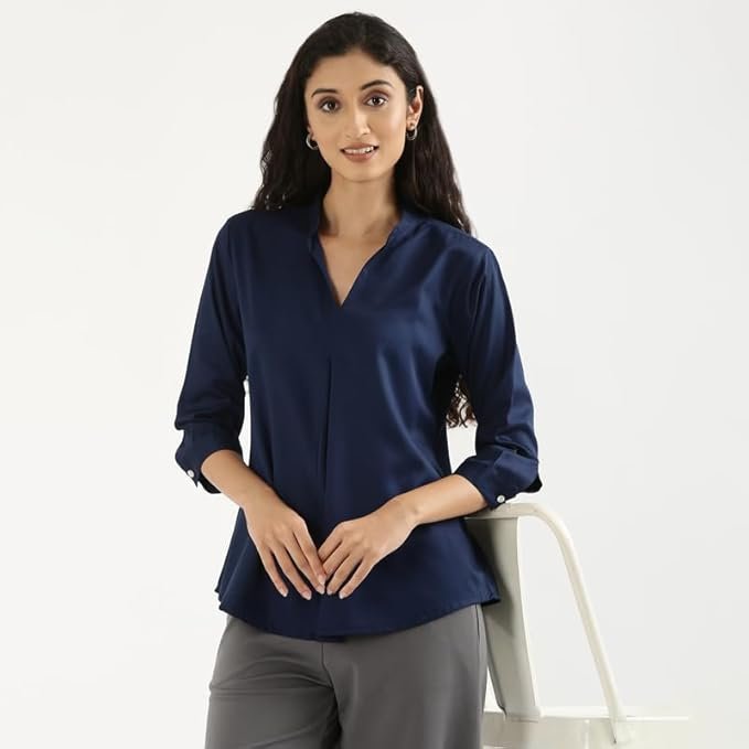 - Stylish Design: Featuring a pleated front and a V-neck with a collar, this top offers a chic and modern look.